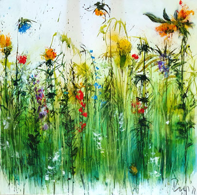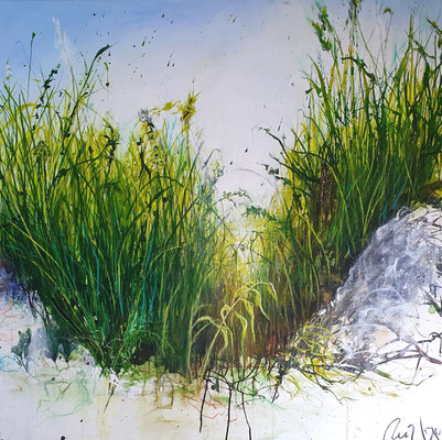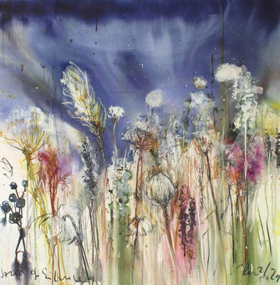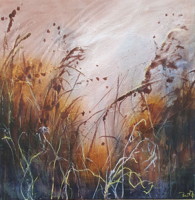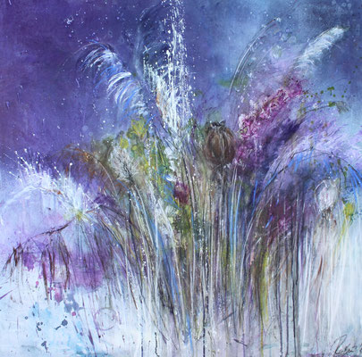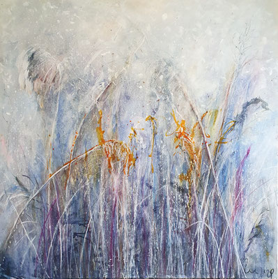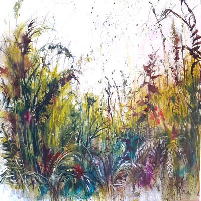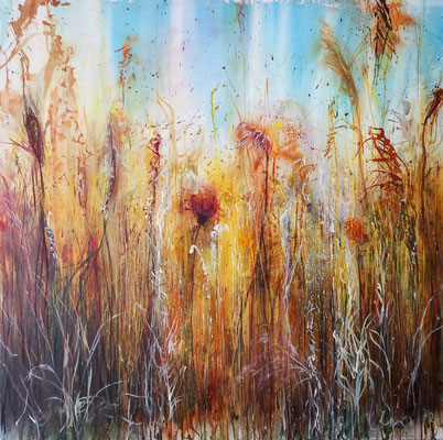 Wintergräser, Acryl, Tusche, Kohle, Pastell, 100 x 100 cm