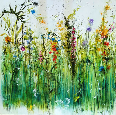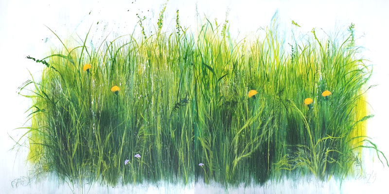 Sommergräser, Acryl, Tusche, Kohle, Pastell, 100 x 200 cm