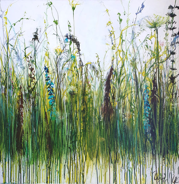 Frühjahrsgräser, Acryl, Tusche, Kohle, Pastell, je 100 x 100 cm